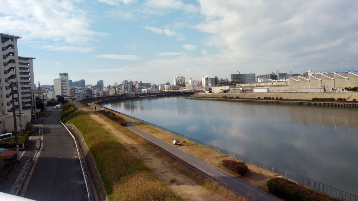 祖父ちゃんにあいさつの後、電動三輪車を駆って、神崎川を渡って初めて南吹田駅の前を通ってます。