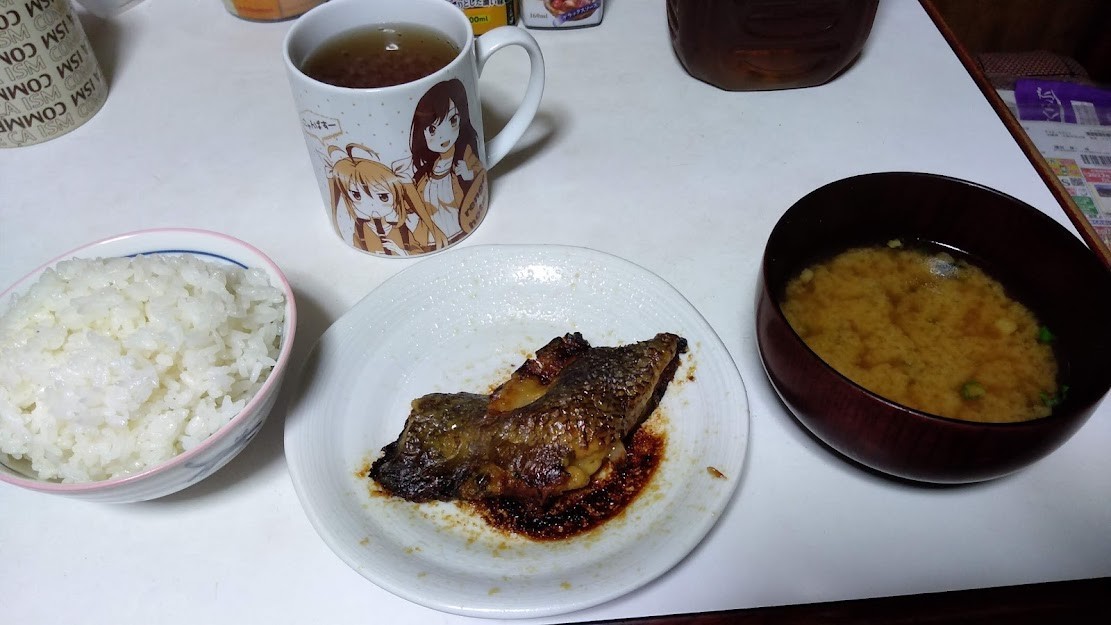 本日の朝ごはんは、昨日買ったメロカマ西京焼きをレンジでチンして。