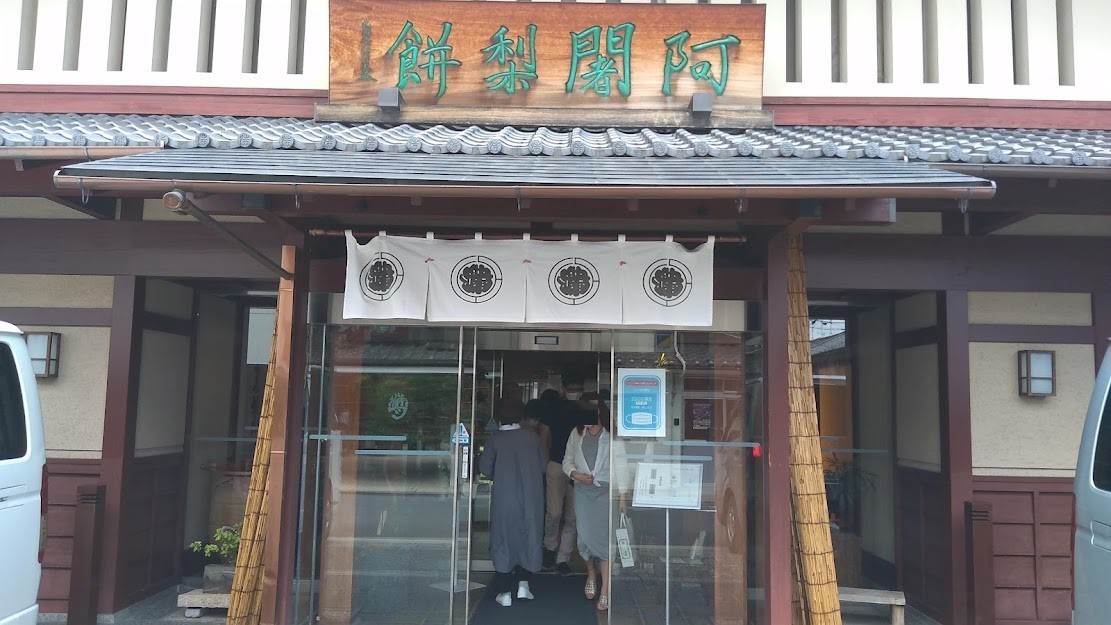 伏見稲荷から北上しまして出町柳駅の駐輪場(1日280円)にアルファを停め、阿闍梨餅満月本店さんで、阿闍梨餅と満月をテイクアウト。