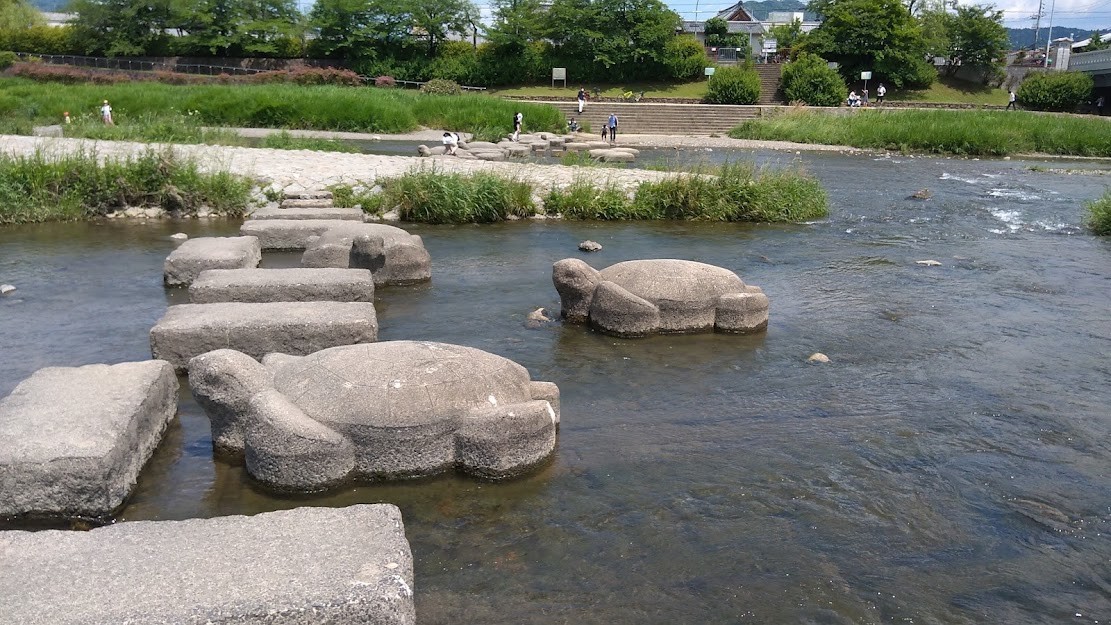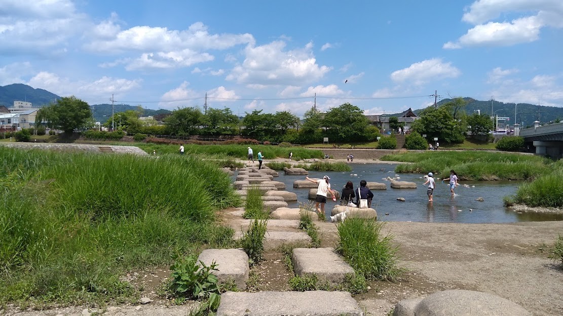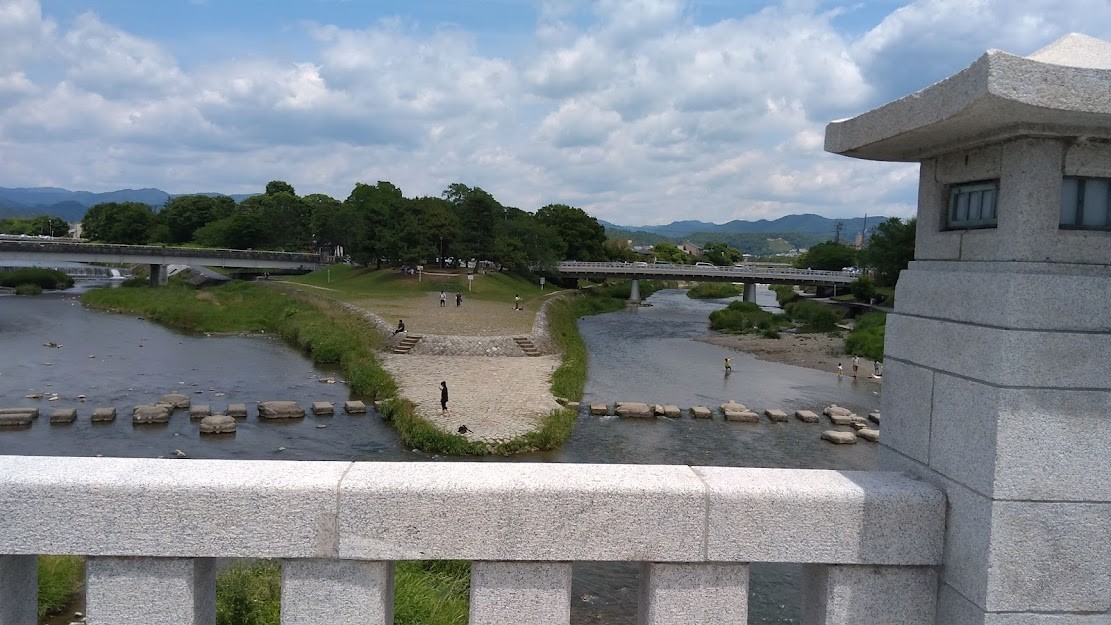 鴨川大橋まで戻ってきて、オープニングで和くんが眺めてる鴨川デルタへ。