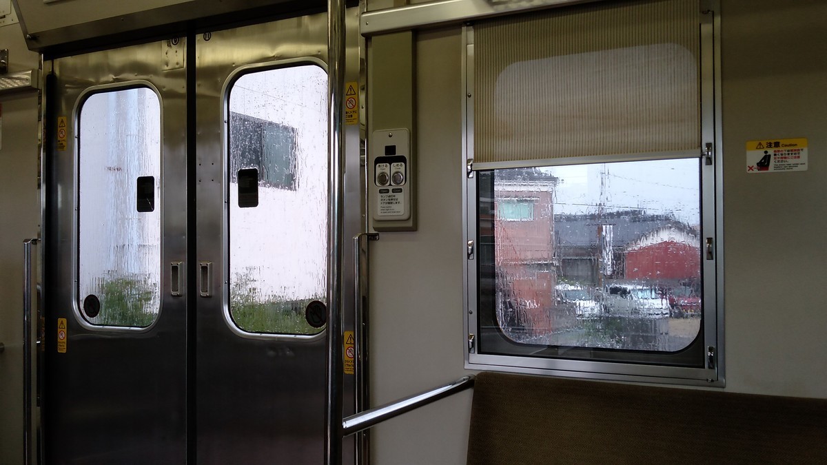 しかし、扇風機の回る電車の外はかなりの雨。いや、予報で分かってたし、ヘビーループしてる宇多田ヒカルさんの『ワン・ラスト・キス』も似合います。