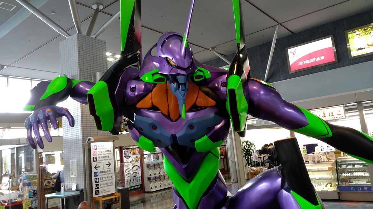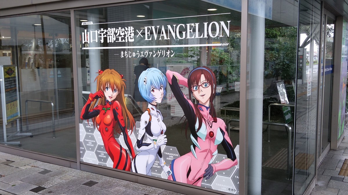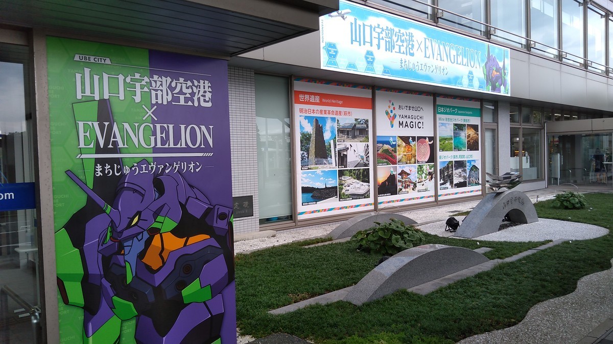 小さな無人駅・草江駅で降りて、エヴァコラボ中の宇部山口空港へ徒歩移動。
