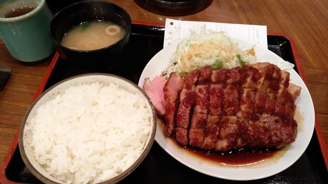 毎度おなじみ大トンテキ定食(1100円)。誰と観に行ってもほぼ毎回連れて行くお気に入りのお店です。