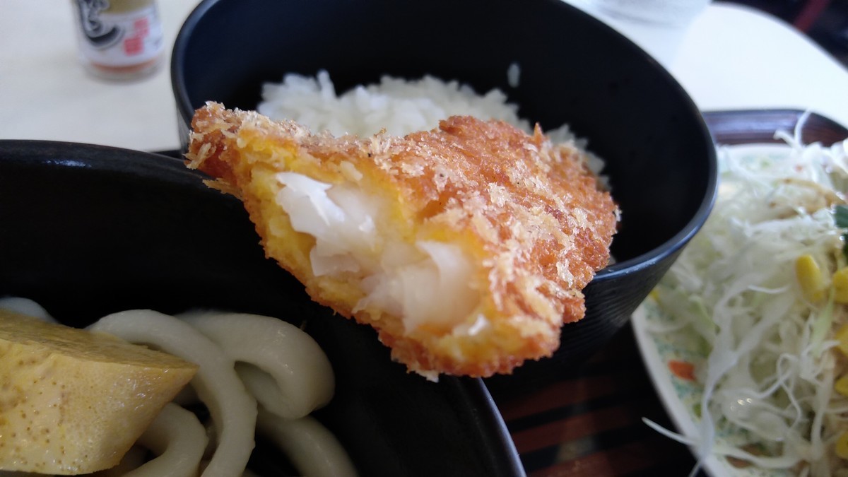 伊勢うどんで十分美味しいのに、普通の洋食屋の海老フライより豪華そうな海老フライの開き3本と1人前ありそうなナポリタンがつくのが、理解できないコスパの良さです。