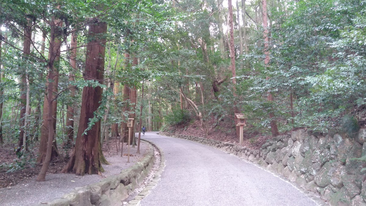 鳥羽のキッチンたかまさんで、伊勢うどんと海老フライを満喫したあと、数駅移動して五十鈴川駅から月讀宮参拝。