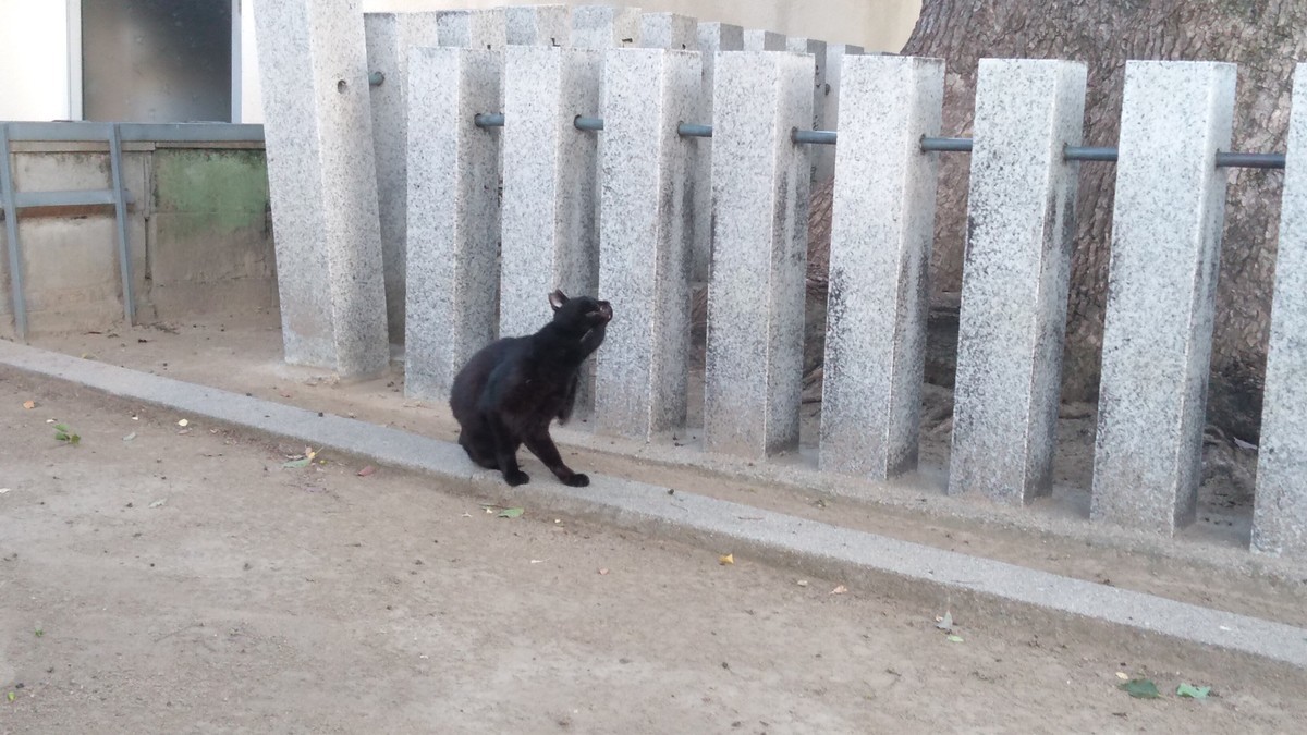 途中で『なーお』『みゃ~』と声が聞こえると思ったら、二匹の猫が向かい合って何か話してました。