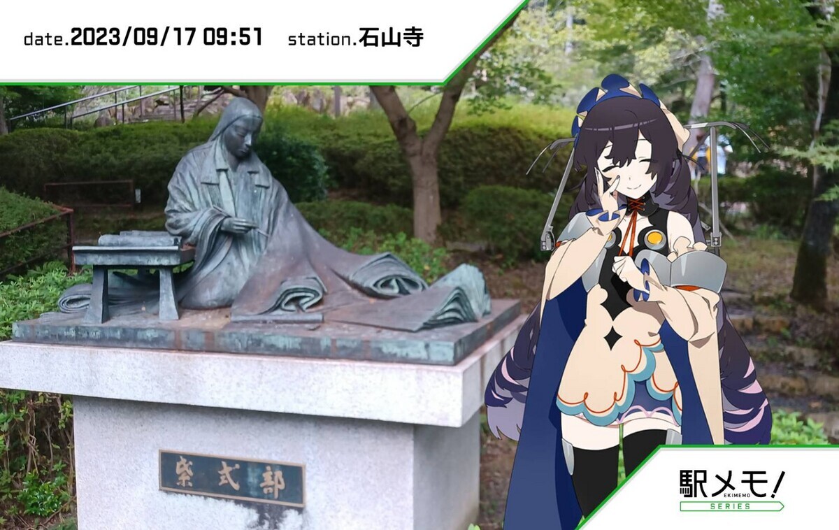 〈紫式部像遠い!と思い、歩き続けながら蝉の声を聞く〉