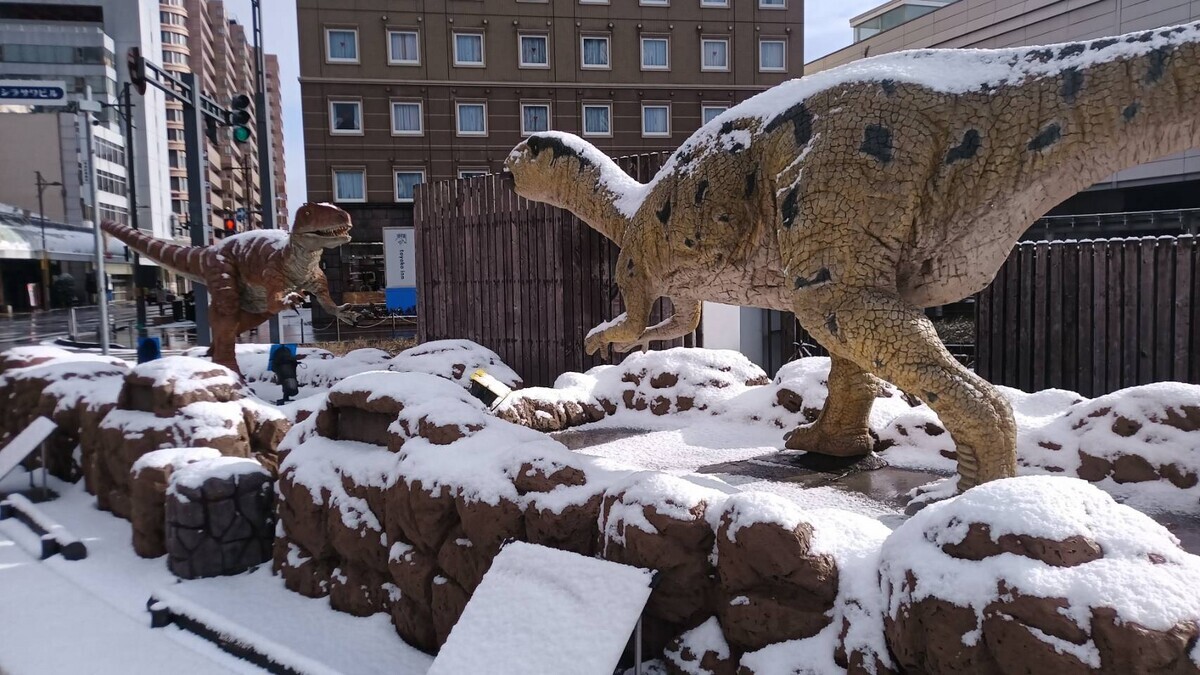 勝山駅で降りまして、なかなかの本気の雪の中でバスを待ってます。(写真は帰りで雪止んでるとき)