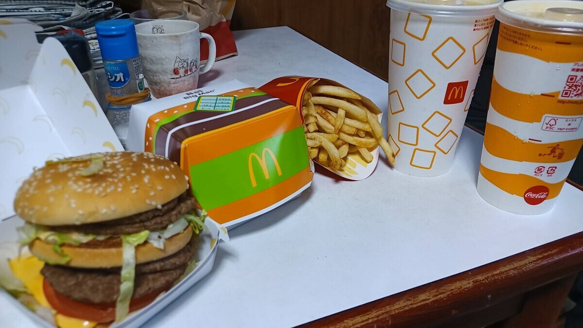 そして、そのまま、マクドナルドで株主優待券2セットを使って、自分の分と両親へのお裾分けの2セットをテイクアウト。