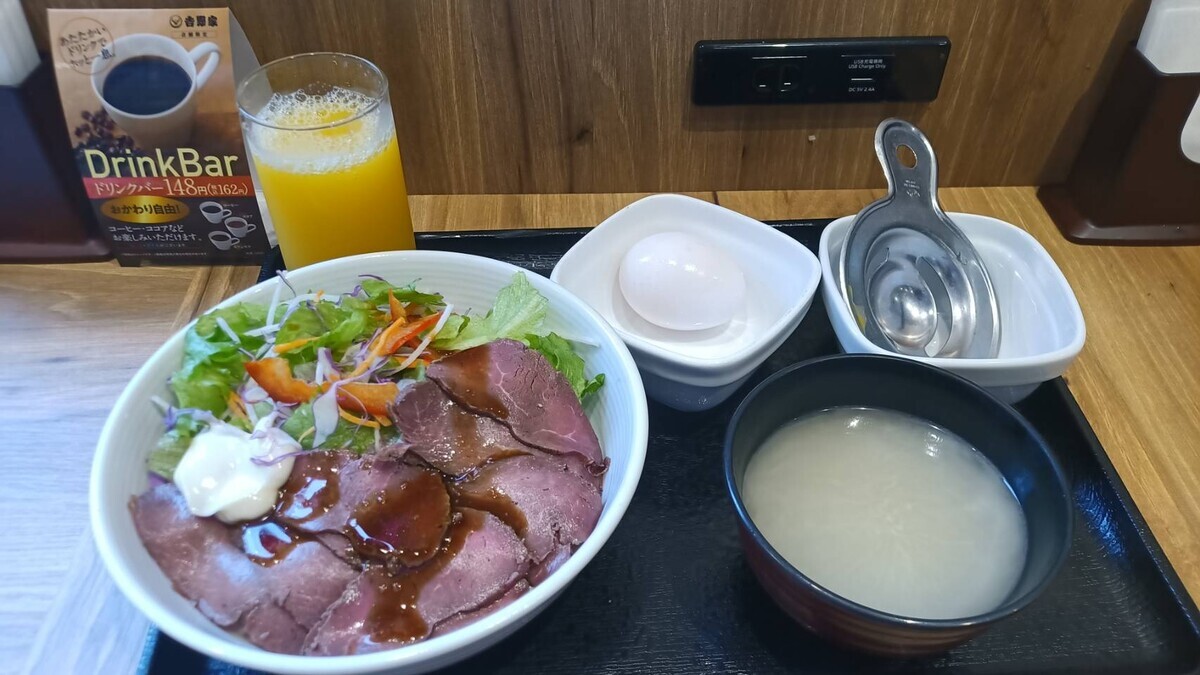 〈ドリンクバー店(黒い吉野家)なので無料クーポンで食後もゆっくり〉