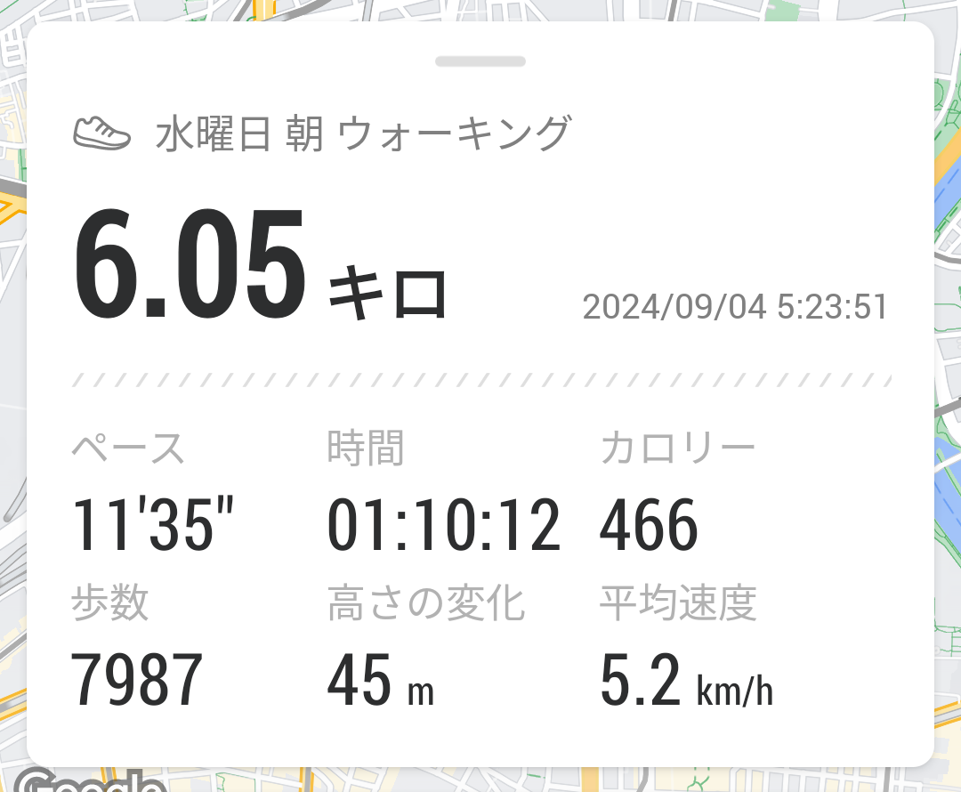 今朝は、ザ・タイムのお目覚めクイズが超簡単、CM入り前に解けるやつだったので、5分くらいアドバンテージを得ての朝ウォーキング。