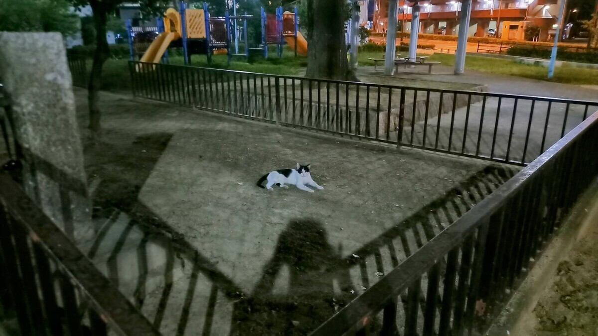 〈須賀の森公園のニャンコ(実際はかなり暗い)〉