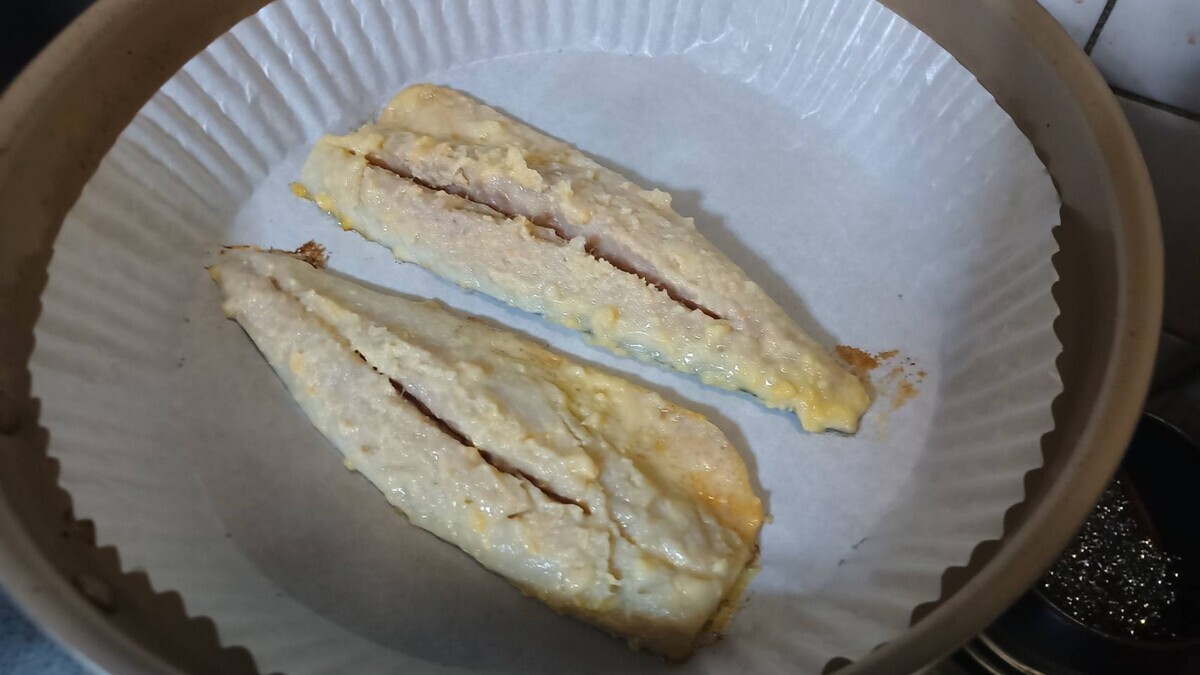 〈フライパンシートで皮面中火4分。ひっくり返して蓋して5分。お手軽。〉