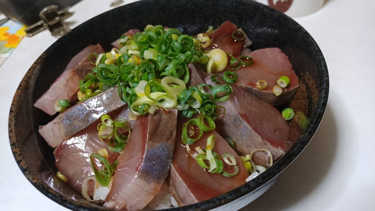 〈母さまに1人前分けても、あふれるハマチ丼〉