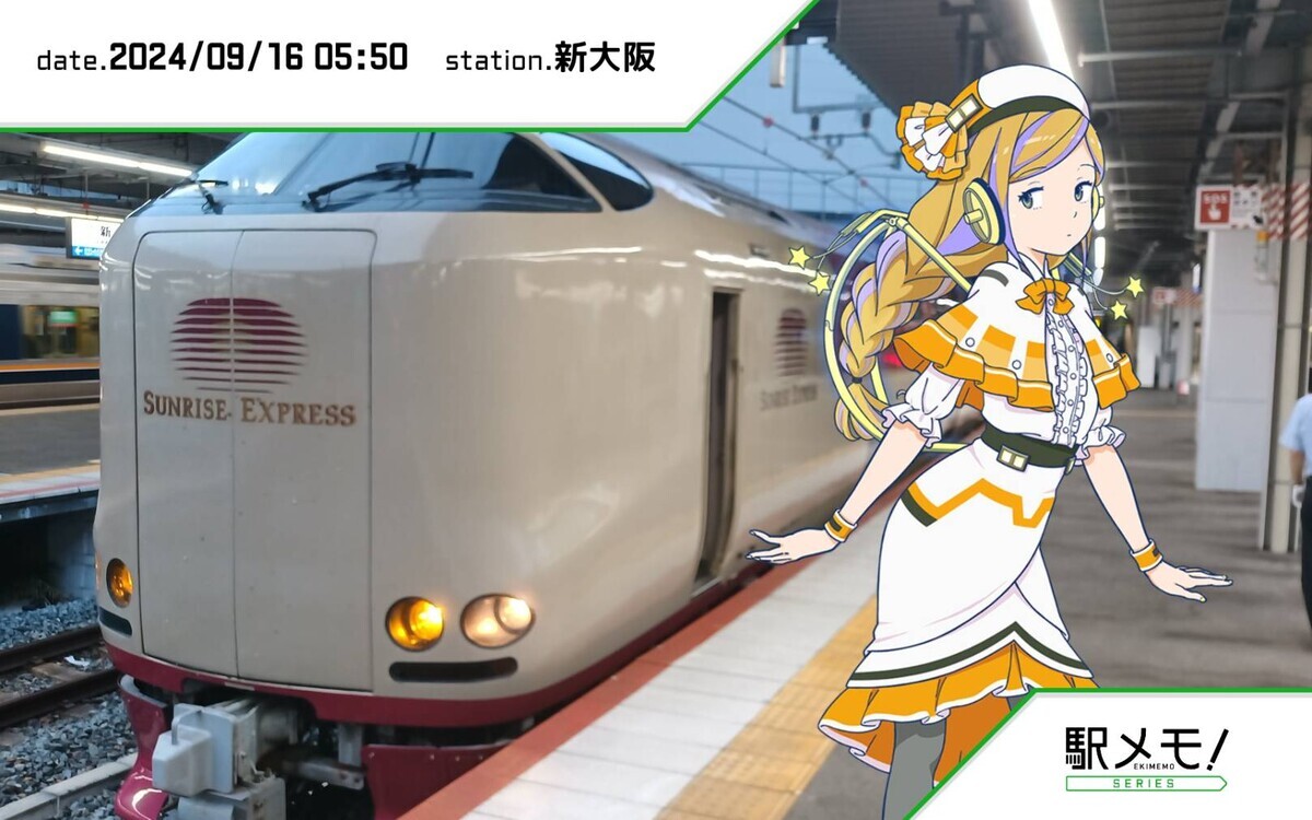 〈サンライズは編成が長過ぎて新大阪のホームからはみ出るんよ〉