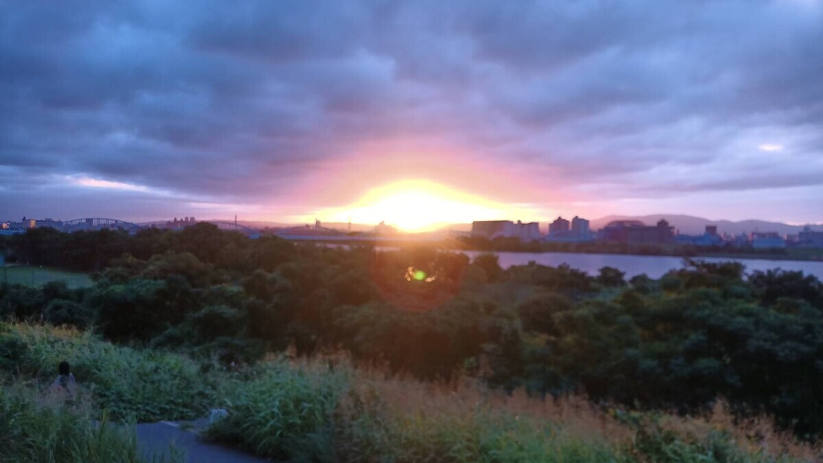その流れで5時台後半の曲は宇多田ヒカルさんの『Beautiful World』。まさにそこで、淀川堤防の日の出だったので、いい感じでした。