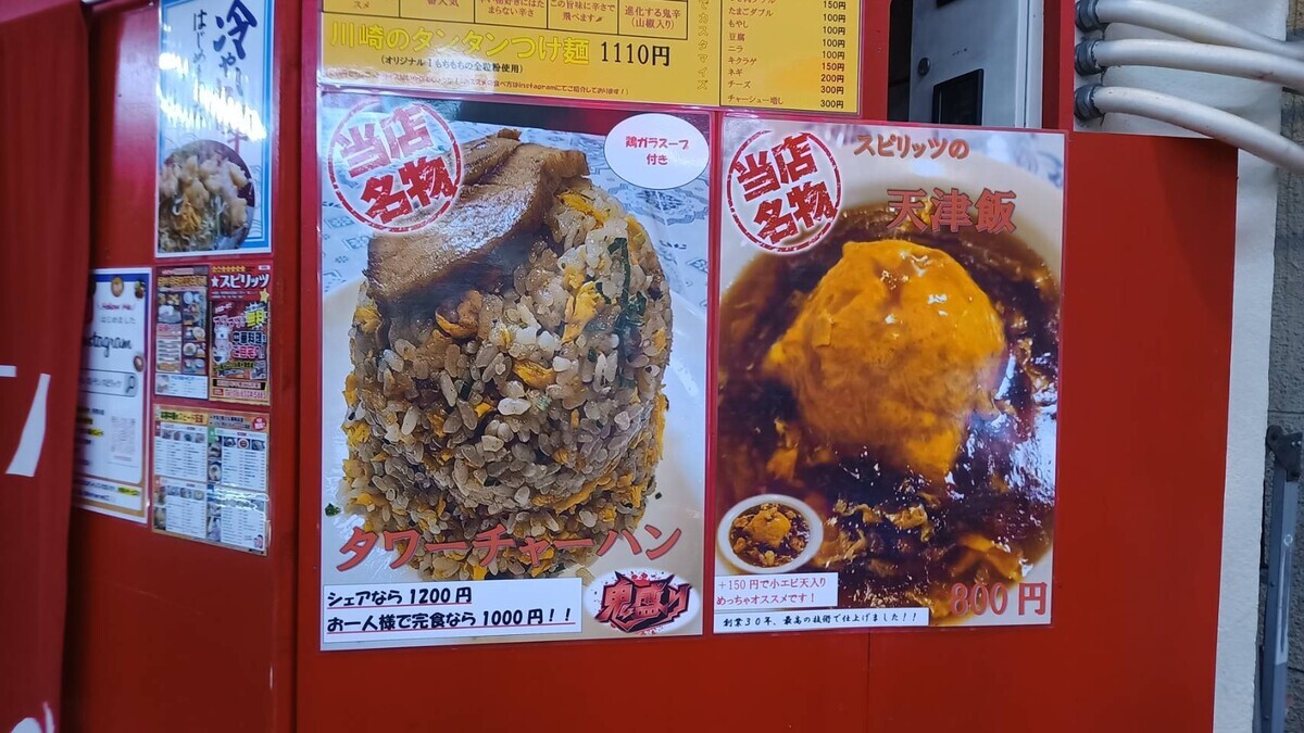 お宮さんと合流しまして、淡路商店街入口にあるスピリッツという中華料理屋さんへ。