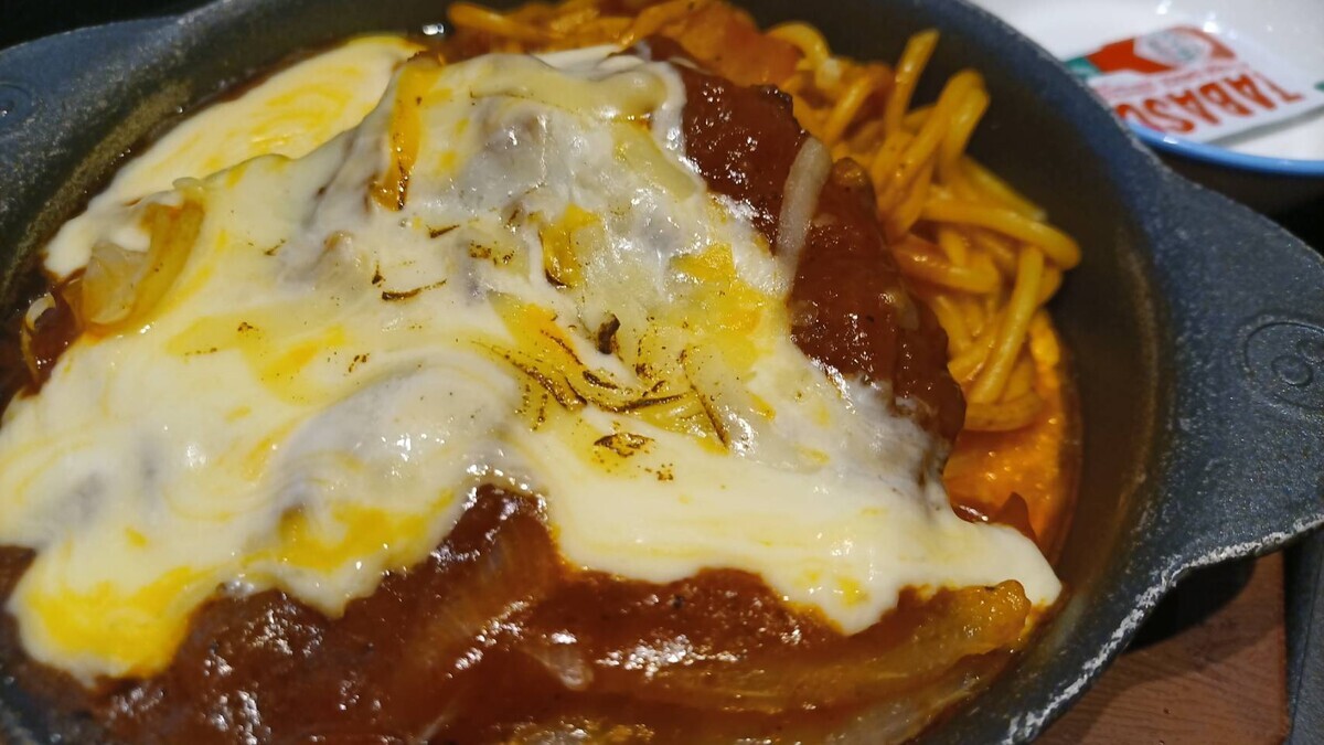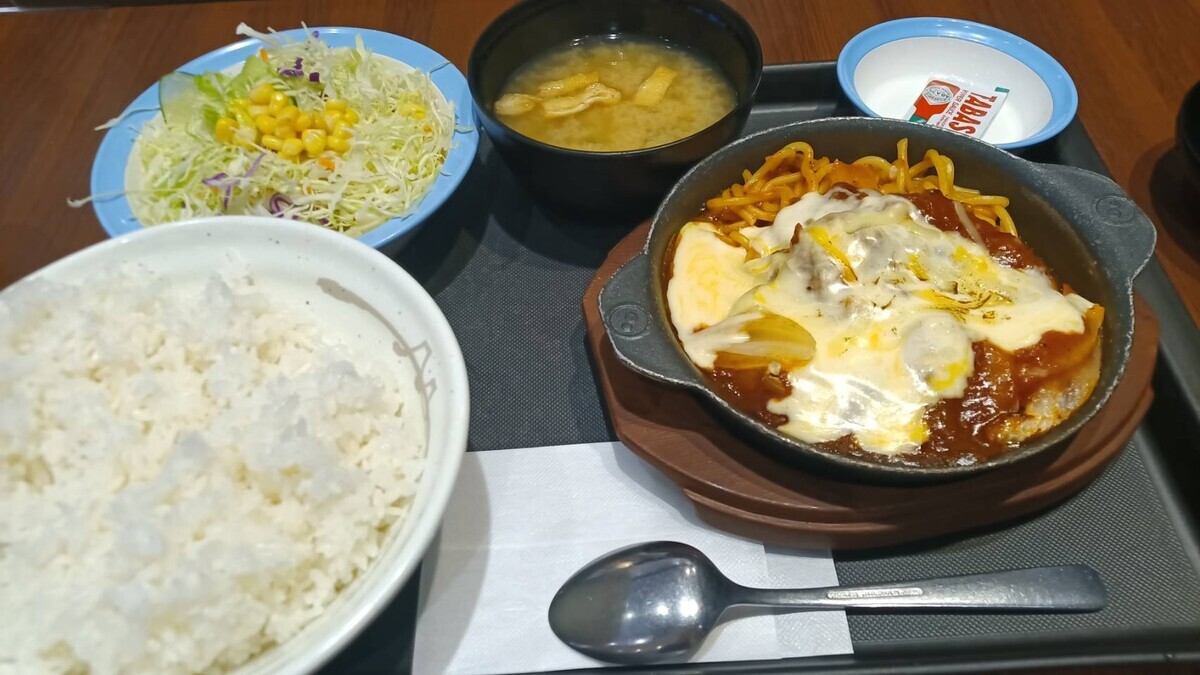 そのまま、晩御飯兼用で松屋にて、西条てっぱん炙りチーズナポリタンハンバーグ定食(1380円)を株主優待券で実食。